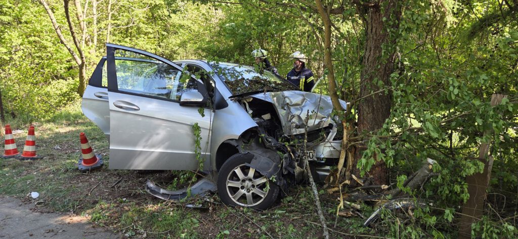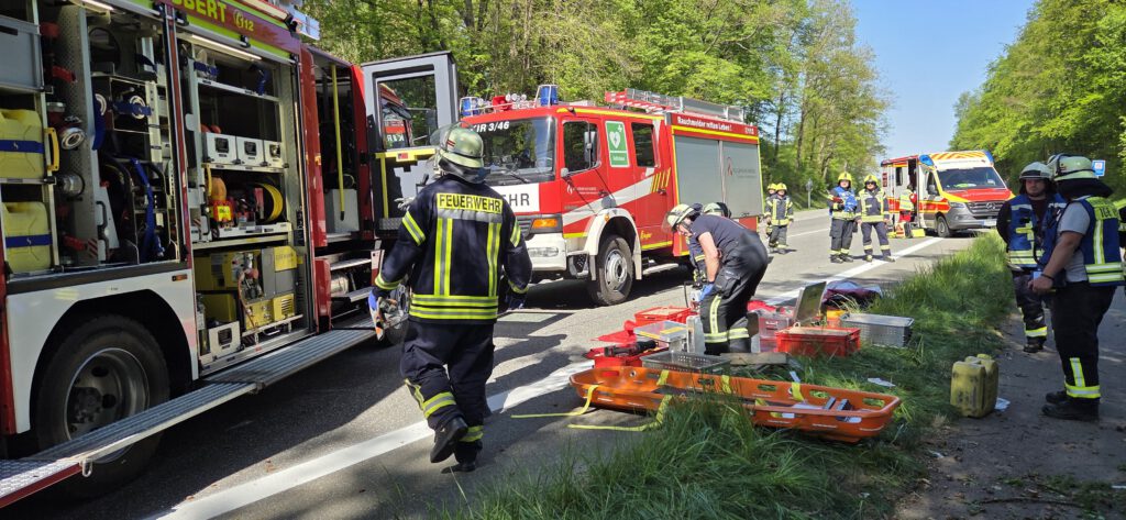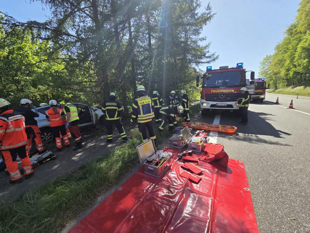 Gemeldet wurde ein schwerer Verkehrsunfall mit einer eingeklemmten Person auf der Landstraße zwischen Rohrbach und Kirkel. Vor Ort wurde ein PKW festgestellt, der frontal gegen ein Baum gefahren war. Die Fahrerin war im Fußraum eingeklemmt und musste durch die Feuerwehr befreit werden. Hierzu wurde eine große Seitenöffnung mit Hilfe der Rettungsschere und des Spreitzers durchgeführt. Anschließend konnte die Person schonend durch den Rettungsdienst aus dem Fahrzeug befreit werden. Nach der Personenrettung musste noch abgebrochene Äste mit Hilfe der Drehleiter aus dem Baum entfernt werden. Während den Einsatzmaßnahmen war die Straße ca. 2 Stunden voll gesperrt. Auch ein Rettungshubschrauber, der Rettungsdienst und die Polizei waren mit an der Einsatzstelle.
